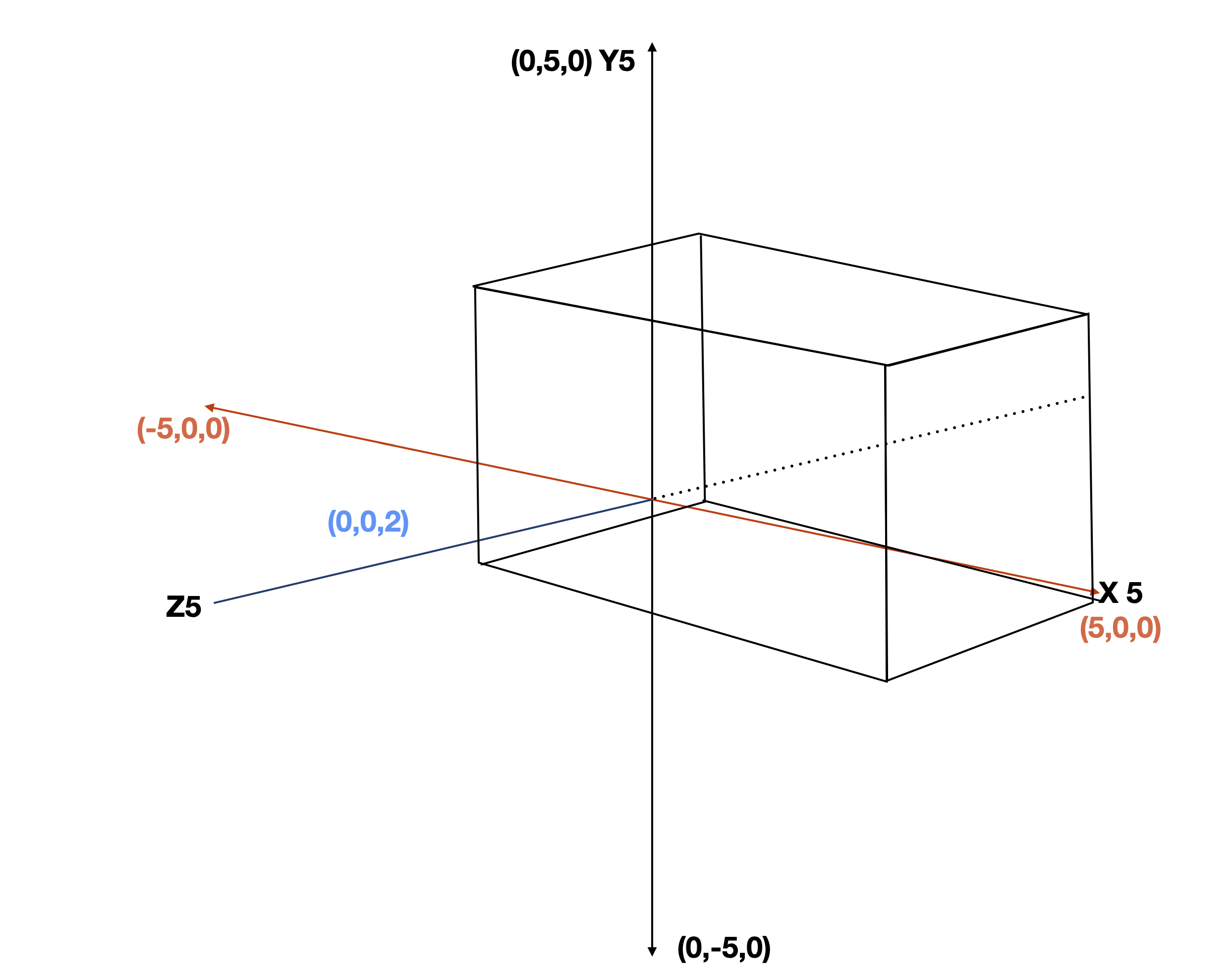 3차원의 좌표시스템은 x와 y축에 이어 Z 축이 수직으로 추가된 형태를 띈다. z좌표의 변화도 x,y좌표와 동일하게 중심으로부터 멀어지는 것과 비례하여 값이 책정된다. 조금 더 쉽게 설명하면 모니터를 중심으로 나에게 가까이 올수록 값이 증가하고 멀어질수록 값이 감소하게 된다.